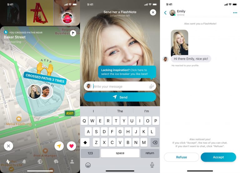 ‘FlashNote’ allows members to be personal from the very beginning, by picking out something out on the other profile and sending a message that relates to it. The messages can refer to a picture, something in their profile description or the location where they crossed paths.